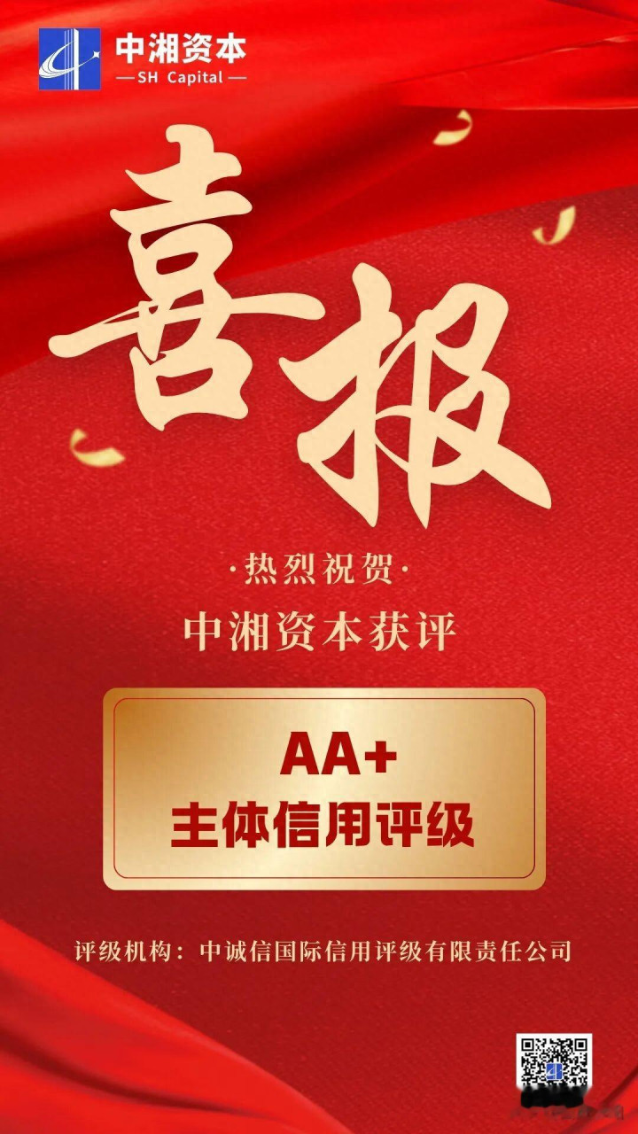 作为湖南建投集团旗下市场化程度最高、金融工具最为灵活的产融枢纽,中湘资本此次获评AA+主体信用等级,不仅体现了资本市场对其专业能力与发展潜力的高度认可,也进一步夯实了集团“双AAA主体”和“AA+金融平台”的多层次、全方位产融结合体系。